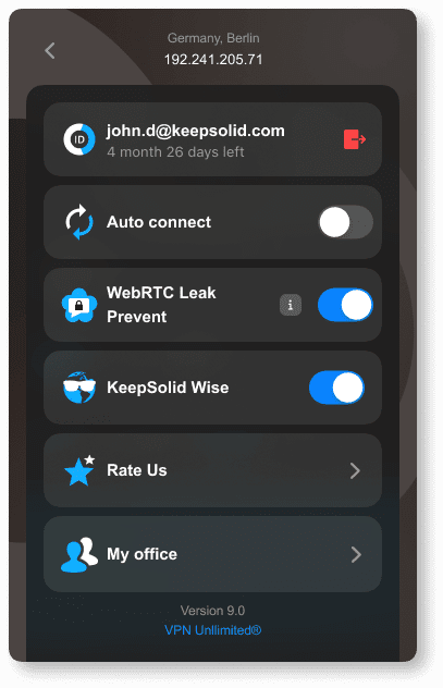 Sollten Sie Fragen zu unserem macOS VPN-Client haben, können Sie sich gerne an unseren Kundenservice unter support@keepsolid.com wenden – echte Menschen werden Ihre Fragen beantworten, keine KI. Wir sind bereit, Ihnen so schnell wie möglich zu helfen.