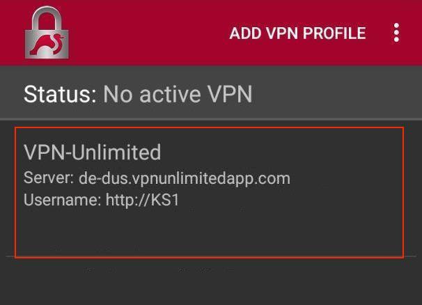 • Profile name: enter the desired connection name, for example, VPN-Unlimited