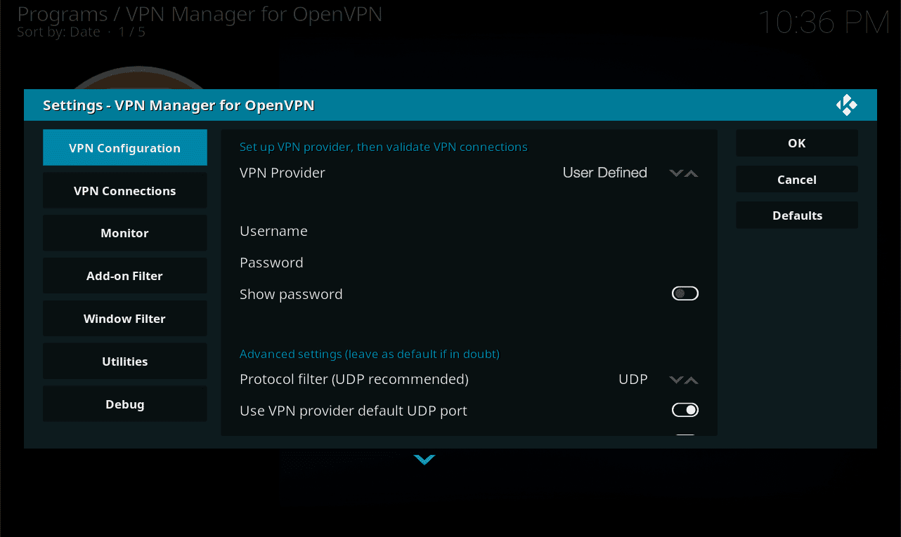 Note: This is a Kodi add-on designed especially to make it easy to configure and manage VPN connections from within Kodi.