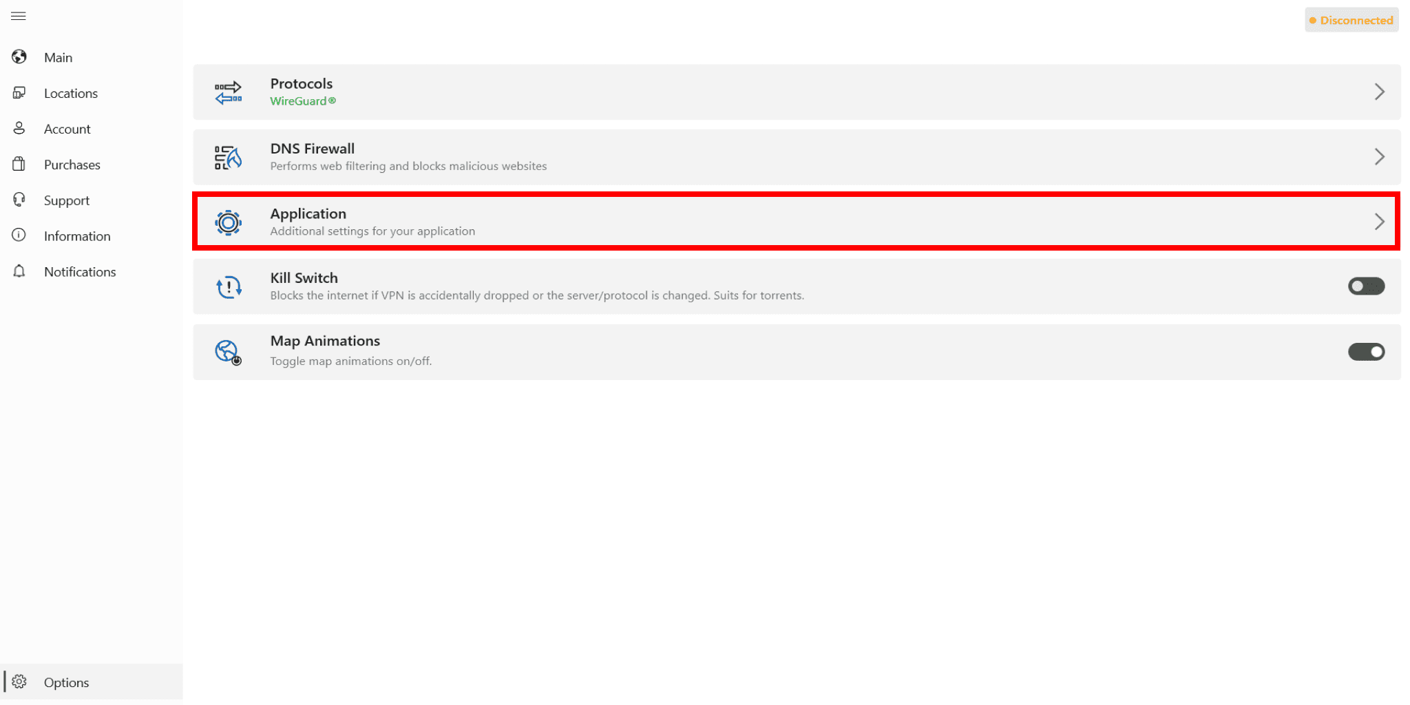 2. Navigate to the Options section.